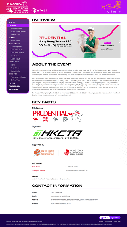 The development of the Hong Kong Tennis Open website aimed to deliver an energetic and stylish digital platform that captures the excitement of the event while appealing to a global audience. Drawing inspiration from leading international sports websites, such as those for major tennis tournaments and other high-profile sporting events, the design process focused on creating a unique, visually dynamic interface that reflects the vibrancy of tennis culture. The website incorporated bold visuals, intuitive navigation, and interactive elements to showcase event schedules, player profiles, ticketing information, and live updates. A WordPress backend was implemented to enable seamless updates to player pictures and banners, supporting multiple languages to cater to diverse audiences. Close collaboration with the client ensured the design aligned with their vision for a modern and engaging user experience, while the integration of responsive features made the site accessible across devices. This project resulted in a distinctive and high-energy website that elevates the Hong Kong Tennis Open’s brand and enhances fan engagement.